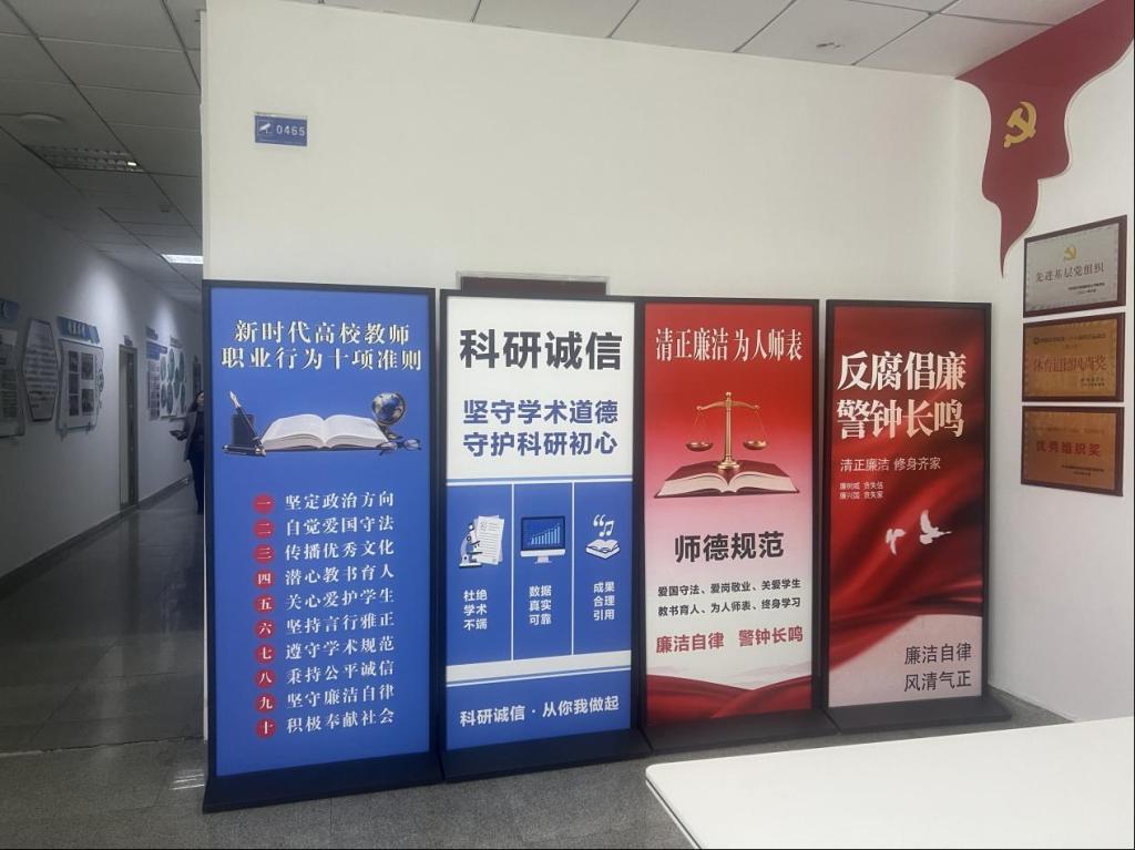 会后,学院通过搭建师德师风警示教育文化走廊,持续针对科研诚信教育、师德师风建设、防腐倡廉等高校突出问题开展常态化警示教育,营造“时时受教育、处处受熏陶”的浓厚氛围,使师德规范入眼、入心。