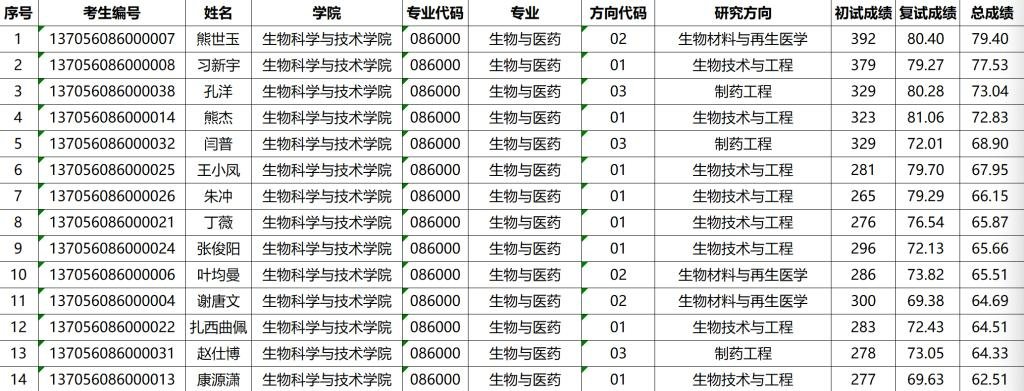 成都医学院生物科学与技术学院2026年硕士研究生一志愿考生复试成绩公示