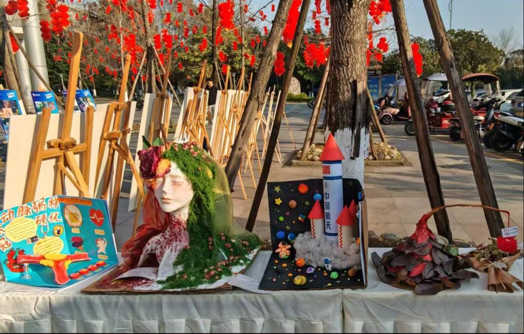 2026年1月7日,由校团委主办、生物科学与技术学院团委承办的成都医学院第十届大学生艺术节设计大赛决赛评选与作品展示活动,在校园食堂门口顺利举行。现场展出了众多充满巧思的学生创作,吸引了大量师生驻足欣赏。党委书记来建、副校长王计生等校领导亲临现场,逐一观看了决赛作品,并与创作学生进行了亲切交流。领导们对大赛在激发创意、美化校园、推进文化建设方面的积极作用给予了高度评价,并鼓励同学们继续发扬创新精神和动手能力,将艺术创意融入专业学习与日常生活。