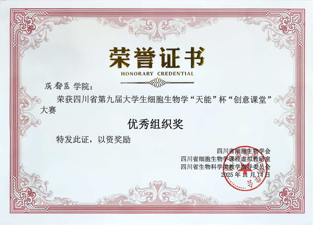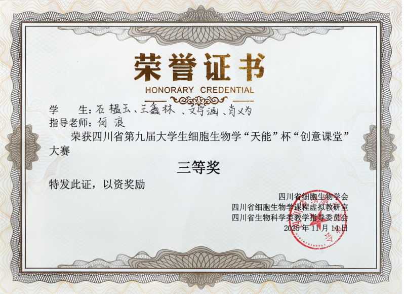近日,四川省第十二届高校细胞生物学“天能” 杯中青年教师教学展示与研讨会暨第九届大学生 “创意课堂” 大赛在泸州举办。我校生物科学与技术学院师生凭借扎实功底与创新能力斩获多项荣誉,学校获评优秀组织奖。