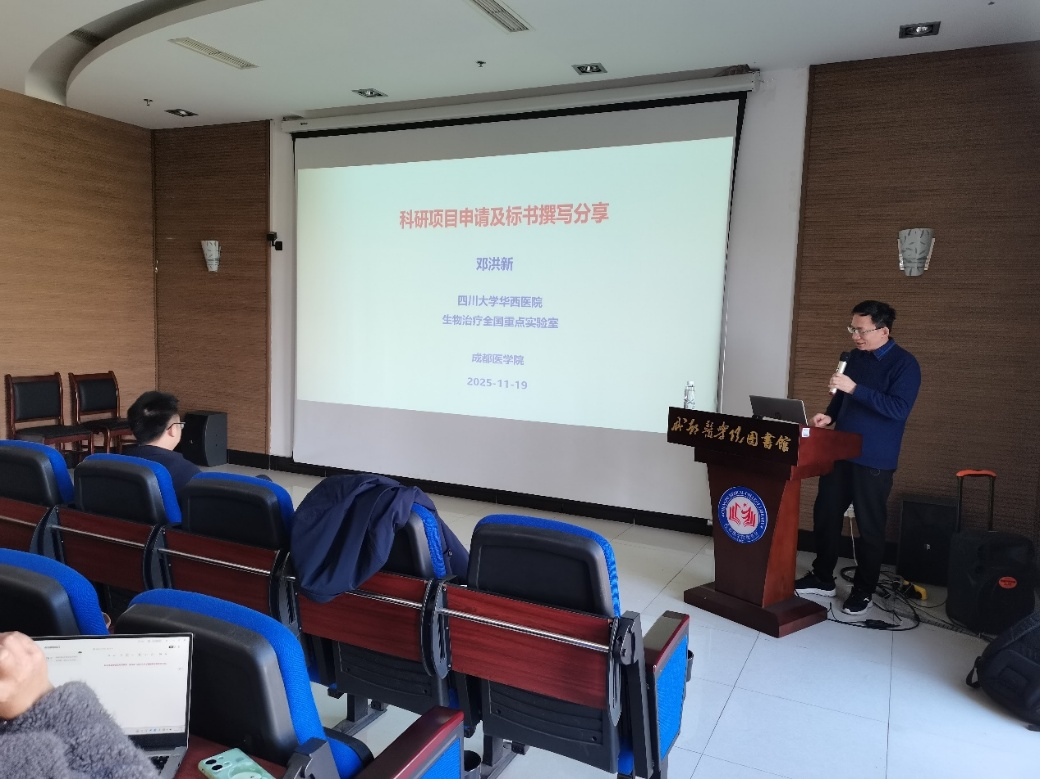 为助力师生及科研工作者精准把握科研项目申报要点,提升标书撰写质量,19 日下午,生物科学与技术学院在图书馆成功举办科研项目申请及标书撰写专题讲座,学院副院长张坤教授主持讲座。四川大学华西医院生物治疗全国重点实验室研究员、博导邓洪新教授受邀主讲,全校 50 余名师生及科研骨干到场参与,共享学术干货。