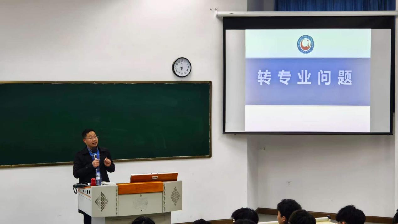 课上,王鹏军以“昨天、今天、明天”为主线,引导同学们回望过往学习积累、立足当下校园生活、展望未来发展方向,鼓励大家以积极心态迎接新学期、新挑战。围绕同学们普遍关心的转专业事宜,详细解读学校相关政策要求、申请流程与时间节点,提醒大家结合自身兴趣与职业规划审慎选择、理性决策。针对补考与缓考安排,逐一说明申报条件、办理程序与注意事项,叮嘱同学们端正学习态度、严守考试纪律、认真做好复习备考。